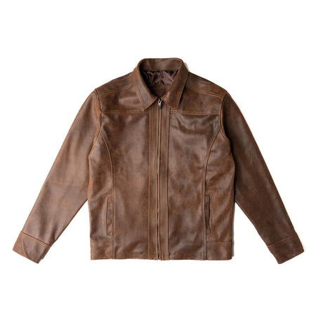 Chaqueta cuello camisero piel encerada cafe | SC028