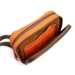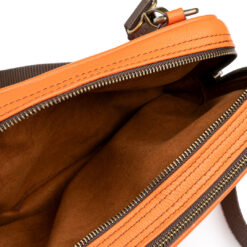 Crossbody hecha el piel tipo floater color naranja: Esta bolsa cuenta con una cremalleras de alta calidad, cuenta con una correa textil, forro de carnaza y excelente mano de obra, diseño retro que muestra la esencia de tus viajes.
