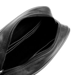 Crossbody Hecha en cuero genuino tipo crazy en color negro, cuenta con asa de mano y strap, forro en textil color negro.