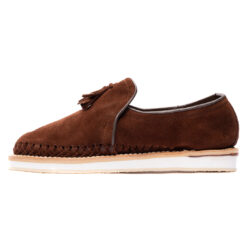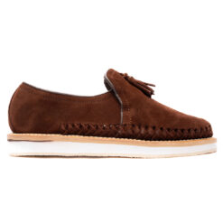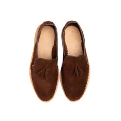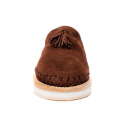 Corte piel tipo gamuza color chocolate, doble eva en suela y ribete.