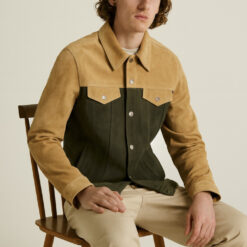 Sobrecamisa confeccionada en piel nobuck, cierre mediante botonadura frontal, cuenta con un forro en textil.