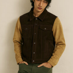Sobrecamisa confeccionada en piel nobuck, cierre mediante botonadura frontal, cuenta con un forro en textil.