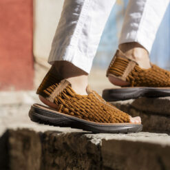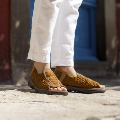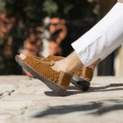Corte en combinación de Nylon con piel. Suela de poliuretano, combinado en color latte y café.
